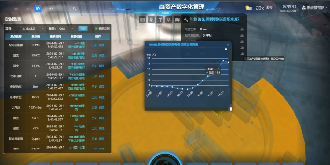 实时监测水电负荷、消防水位、环境温湿度等关键指标,自动识别异常波动;