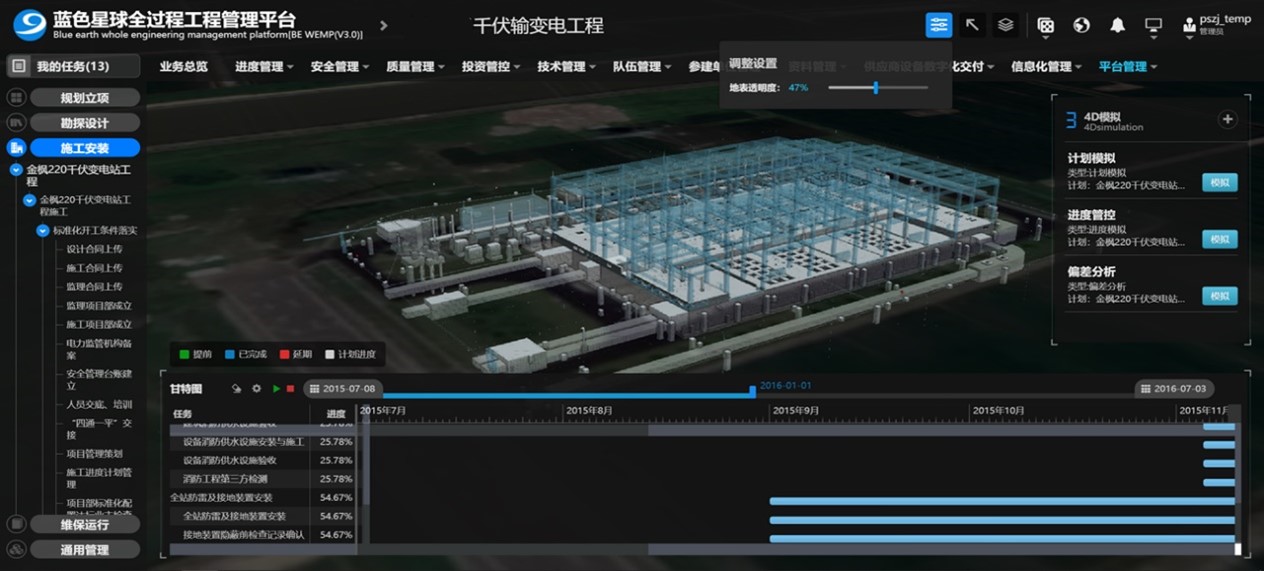 构建了“四位一体”智慧平台,建立起总体业务架构,并具有数字化辅助评审、供应商数字化交付、数字化施工过程管理、竣工交付管理、变电站数字孪生等特色模块。实现了标准化设计、工厂化制造、装配式建设、机械化施工、数字化移交、可视化运维等目标。
