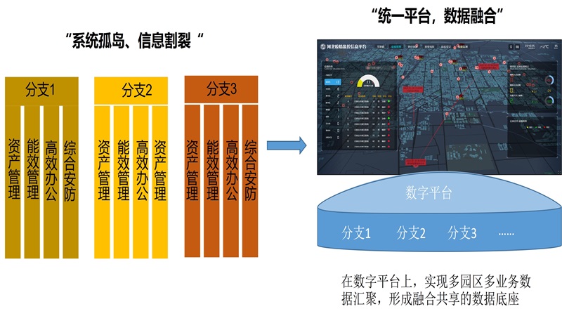 2. 高校、医院园区:碎片化、信息孤岛林立,体验差、依赖手工管理,隐患多、安全管理薄弱,不可视、资源浪费较大;