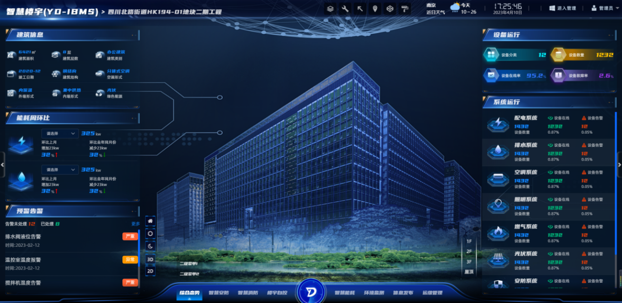 蓝星智慧楼宇(LX-IBMS)是面向楼宇的管理者和使用者,是传统BAS系统数据及功能的聚合、更高效的分析和管理、跨平台、跨品牌的整合各子系统数据,支撑二维、三维数字孪生展现,并建立一套面向楼宇大数据处理和分析应用的方法、海量感知设备和云计算的结合的应用。